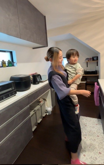 ▲家事をしながらお子様のフォローがしやすいと喜んでいただいたキッチンまわり