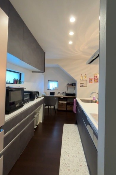ベルズワークスさんから「キッチンを角に配置すると、ご主人が入りづらくなりますよ」という心理学的なアドバイスをもらったんです(笑)。