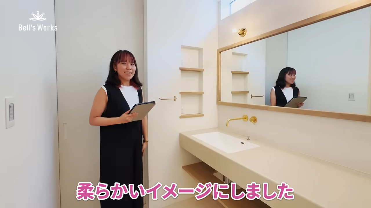 やわらかい色使いとゴールドの水栓など、デザインもまとまっていますよね。