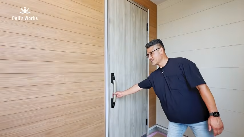 【玄関】通りから見えないドアや造作ベンチがポイント(03:54)