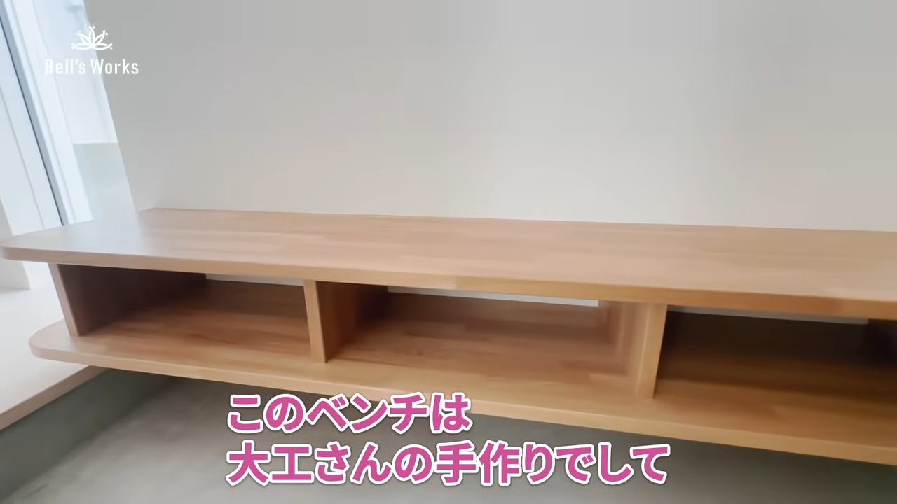 玄関の中には、大工さん手作りの造作ベンチを設置しました。