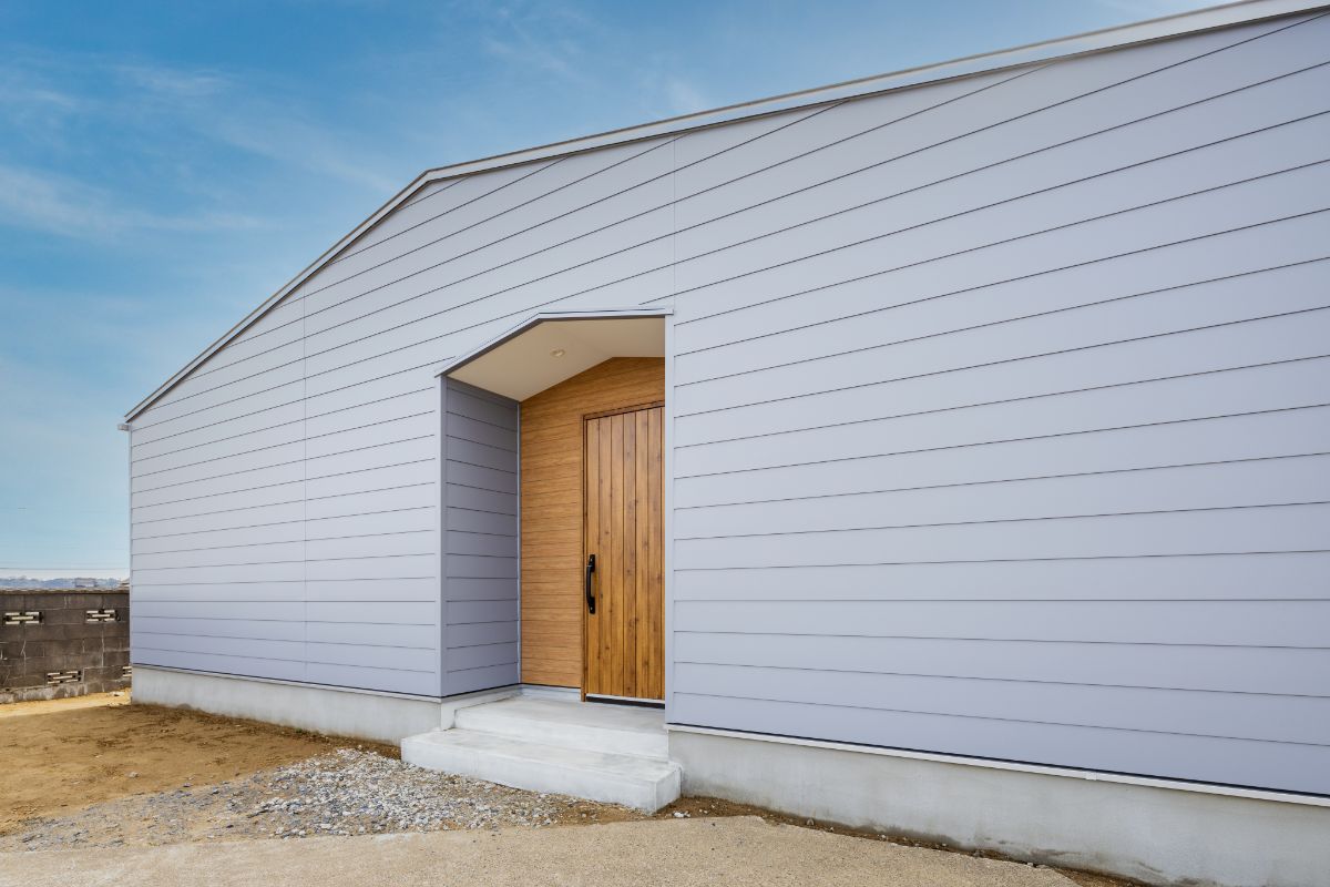 外壁には、ライトアッシュカラーのガルバリウム鋼板(SP-ビレクト)を採用しました。