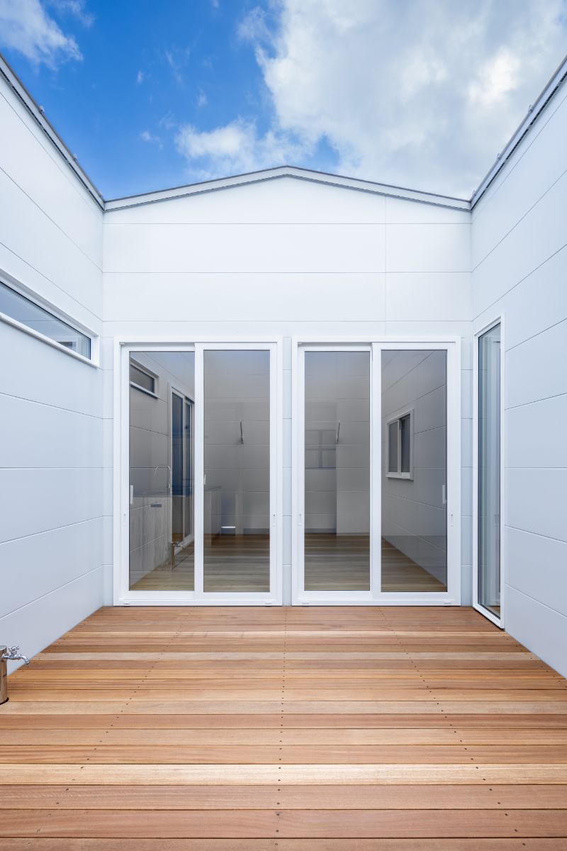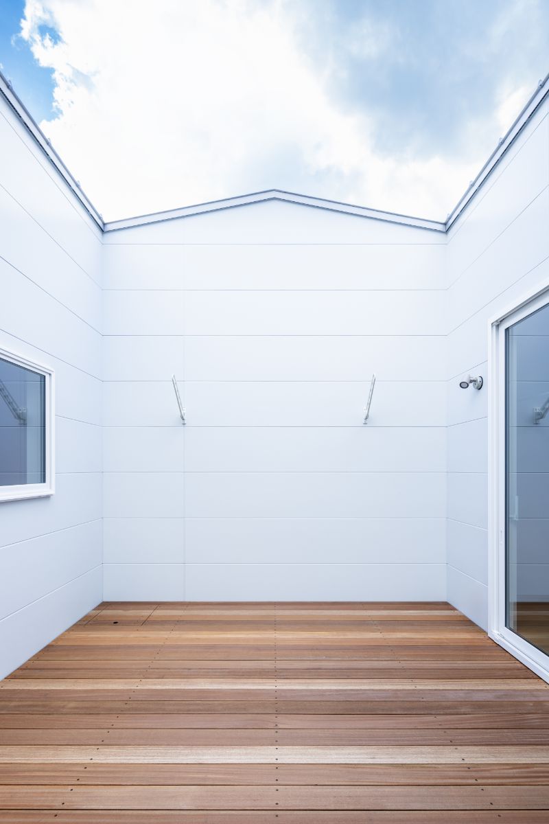 中庭は家の外からは全く見えない設計になっており、お子様との水遊びや、人工芝を敷いてリラックスタイムなど人目を気にせず楽しめることができます。