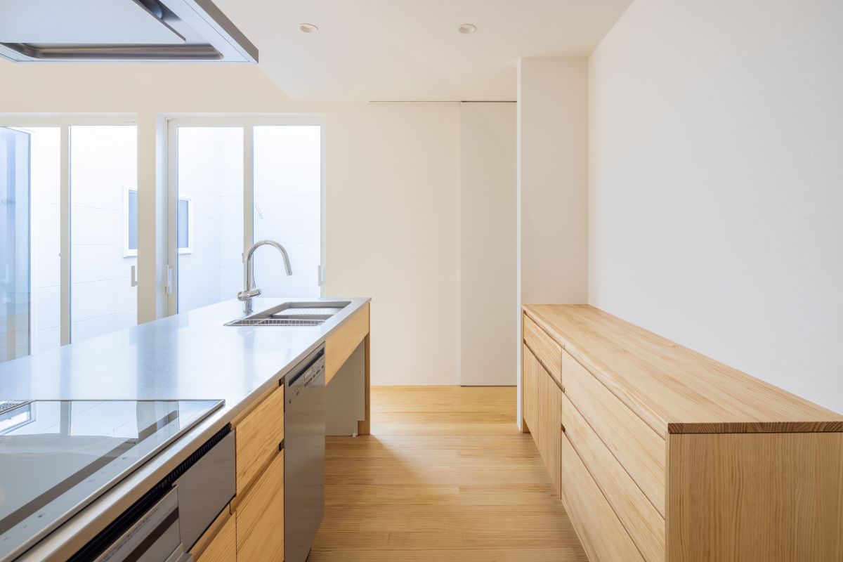 水回りを中庭に隣接して集約しているので「洗う・干す・しまう」の作業が一箇所で完結します。